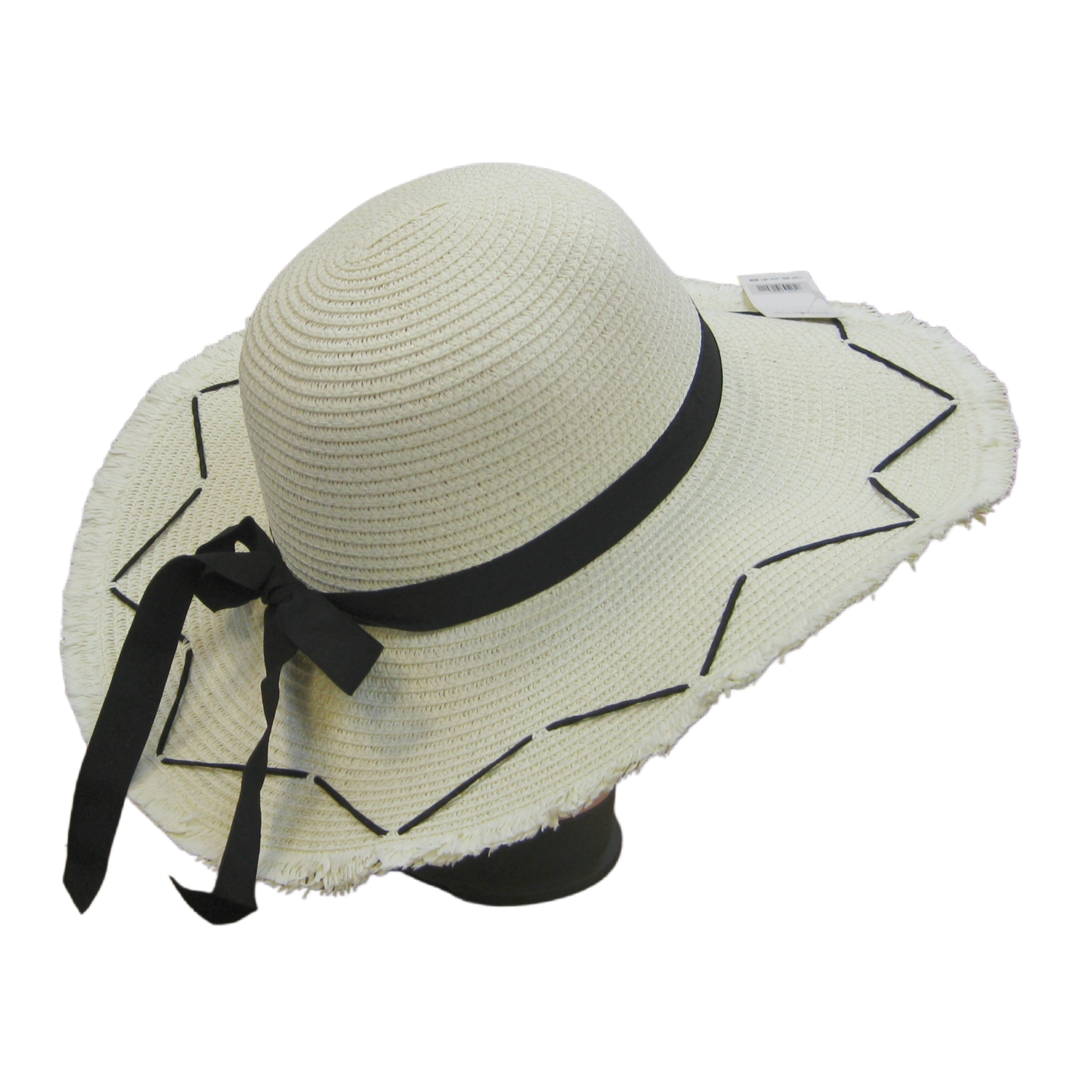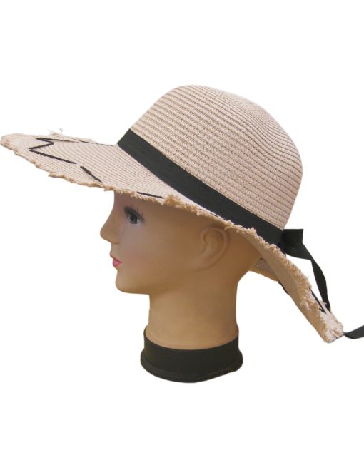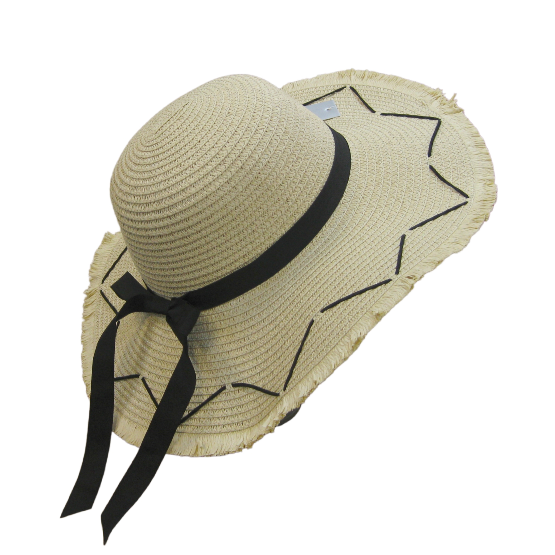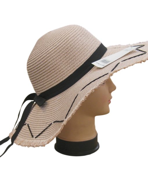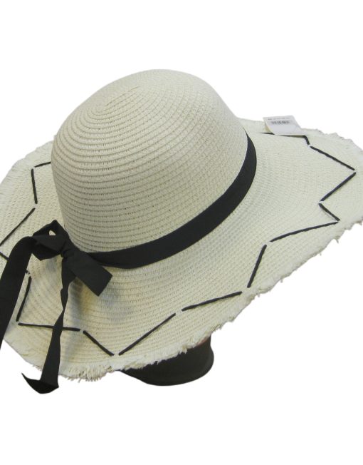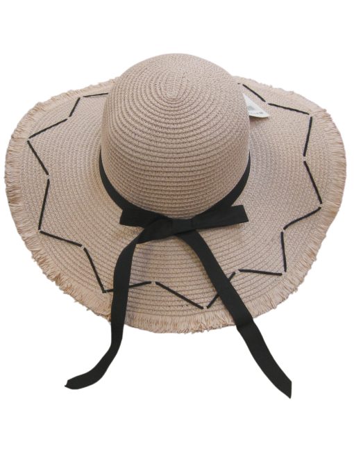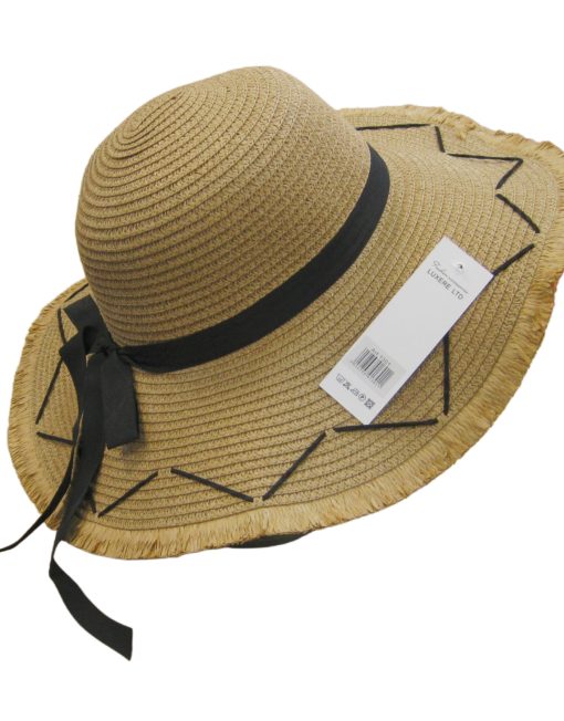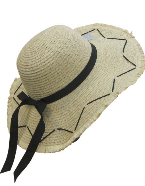 Description: Black Bow Straw Summer Hat with Edging