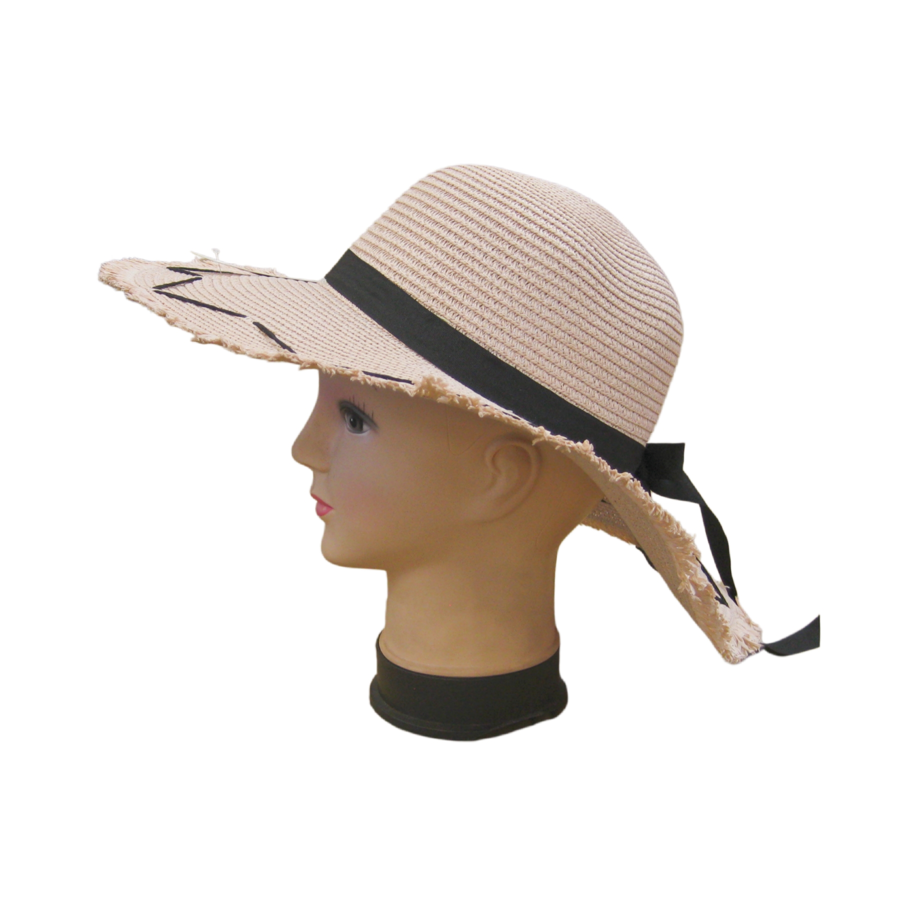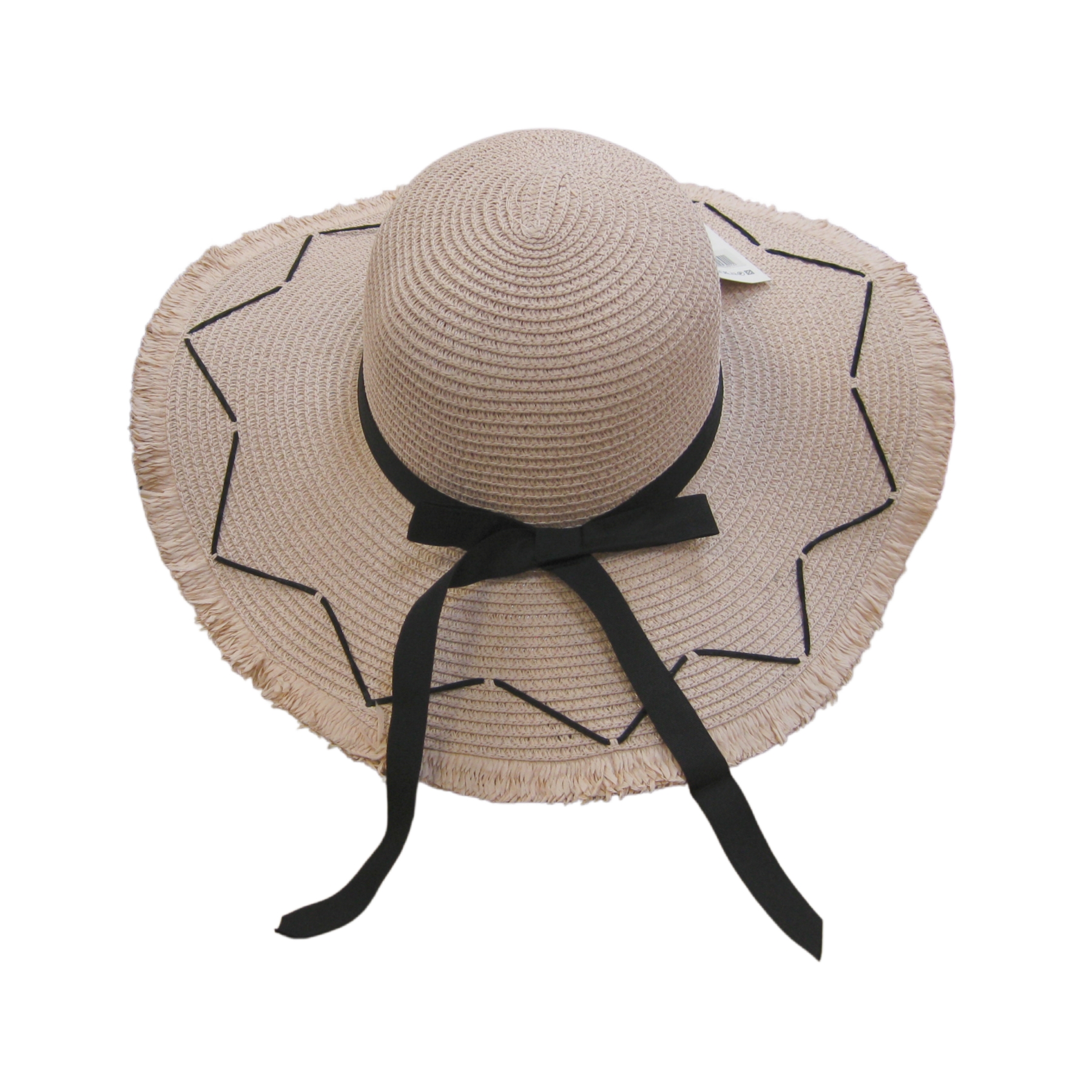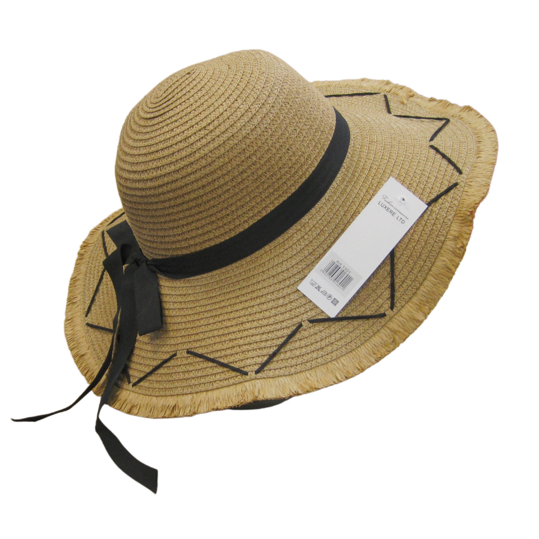 Description: Black Bow Straw Summer Hat with Edging
