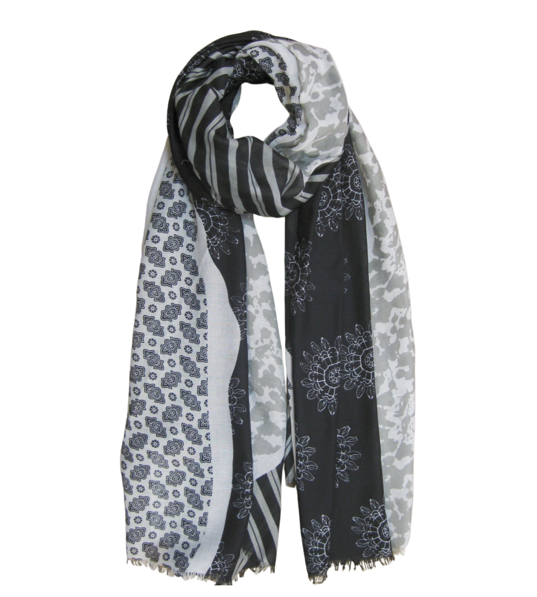 Description: Diagonal Stripes and Leopard Print Scarf
