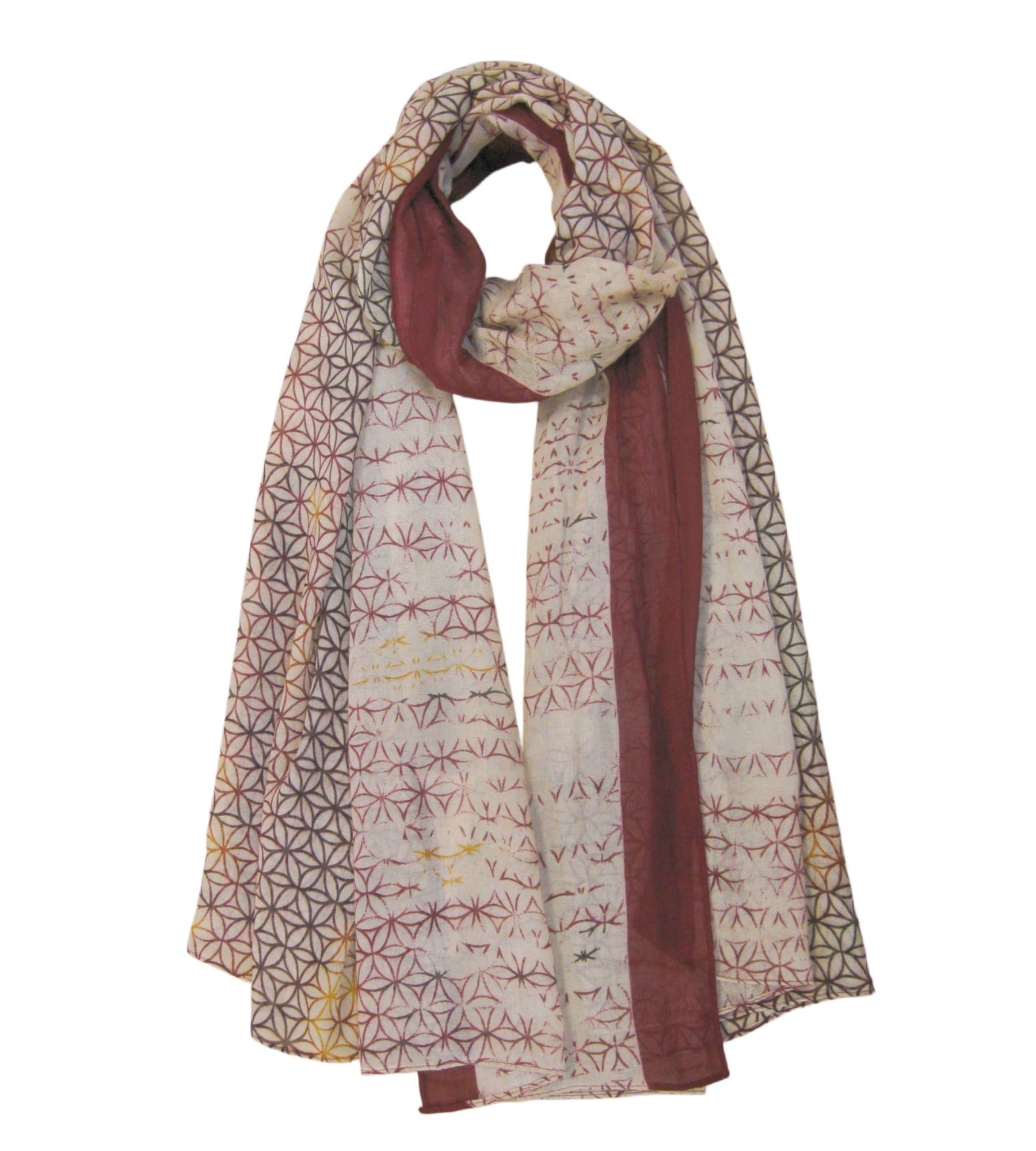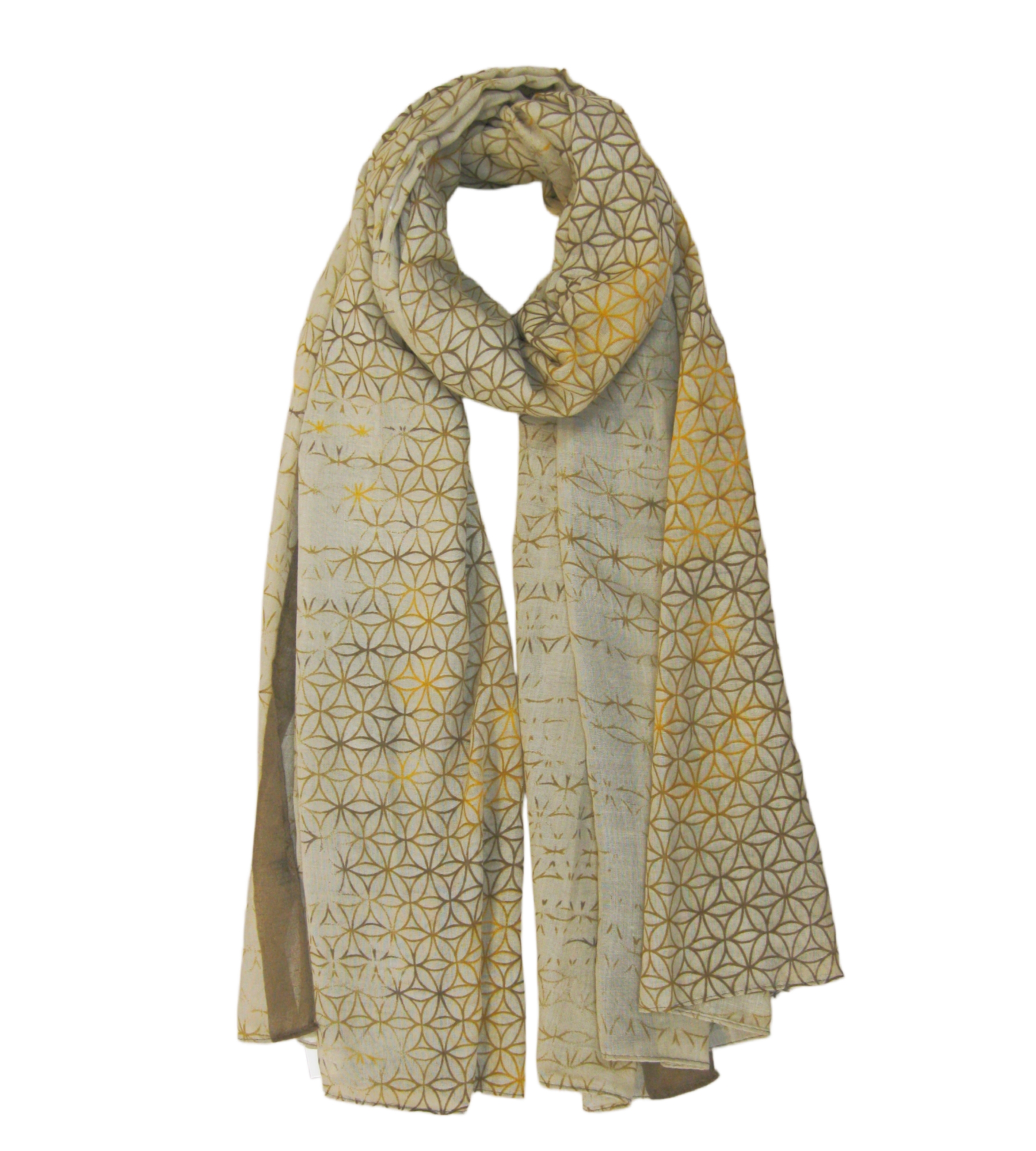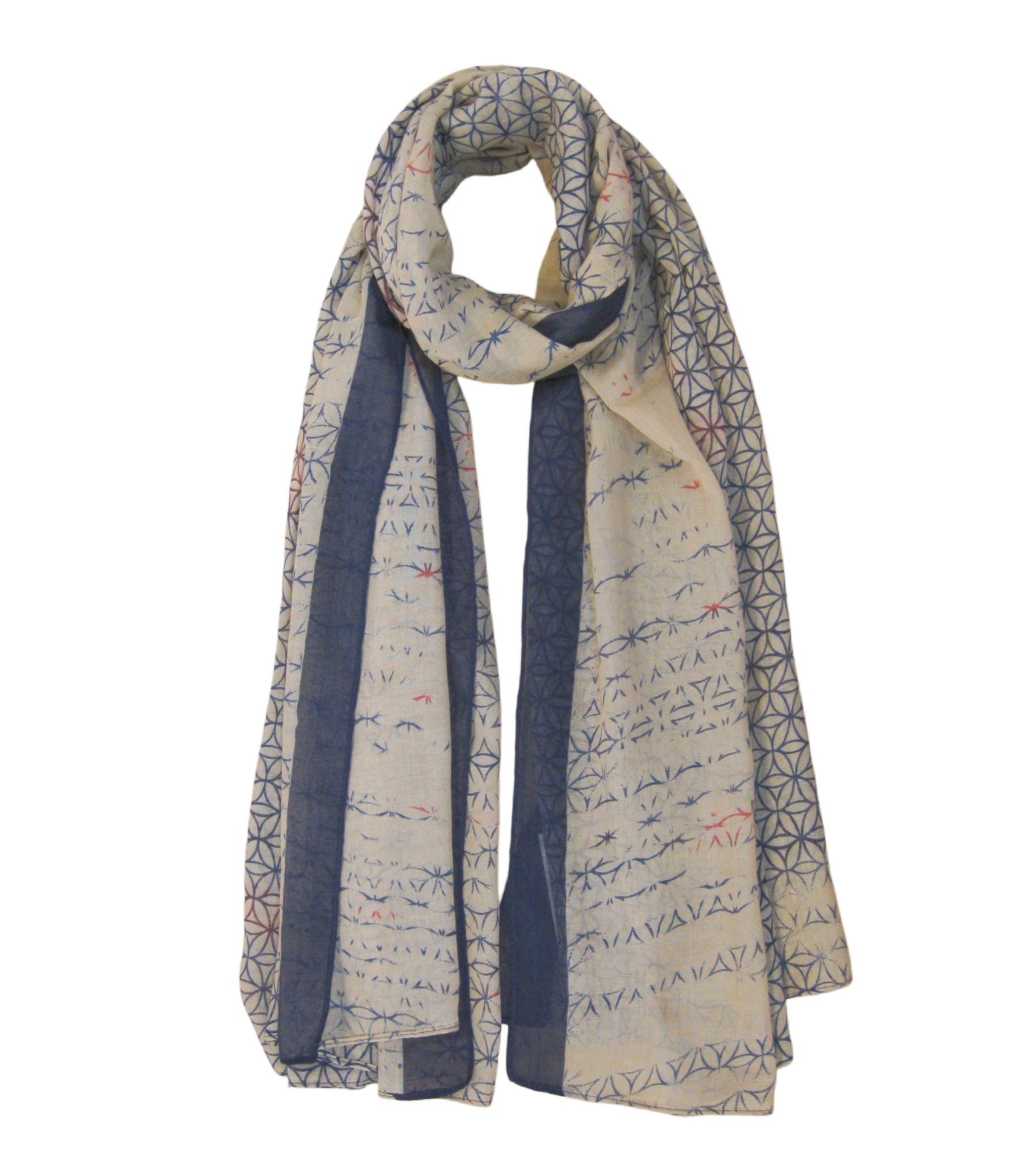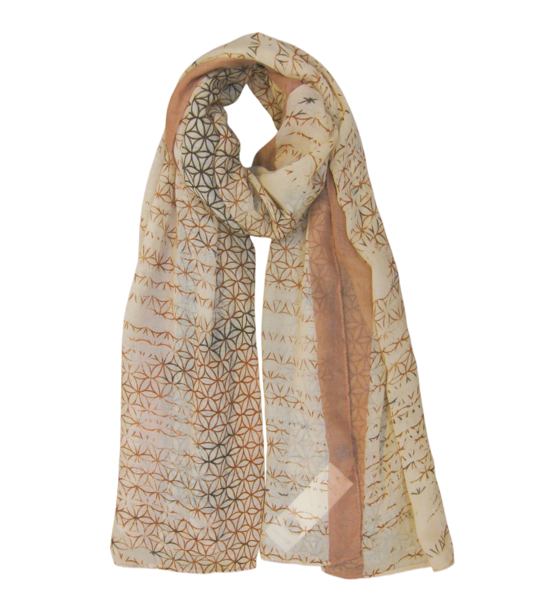 Description: Different Circles Pattern Print with strip Edge Print Scarf
