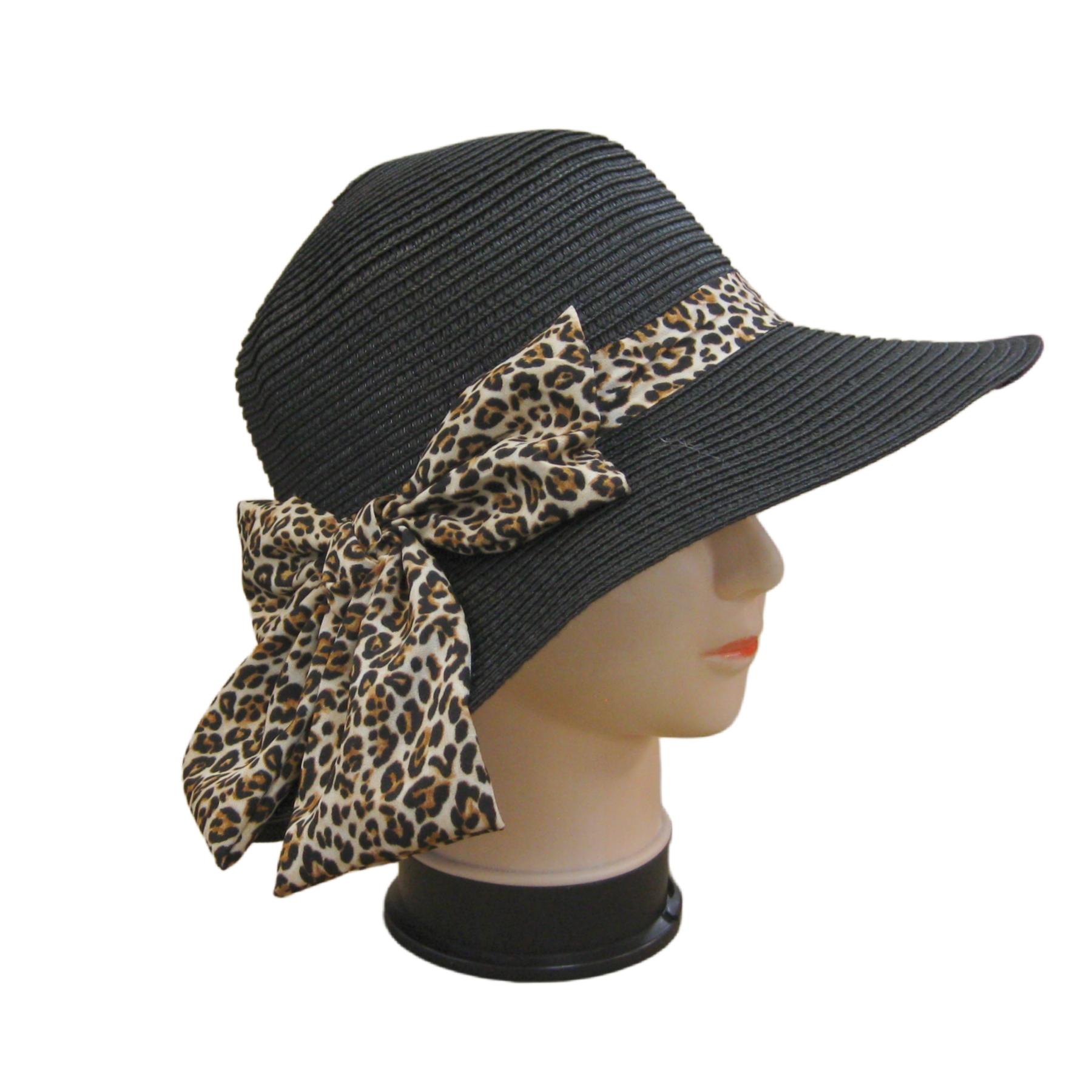 Description: Leopard Bowtie Summer Hat